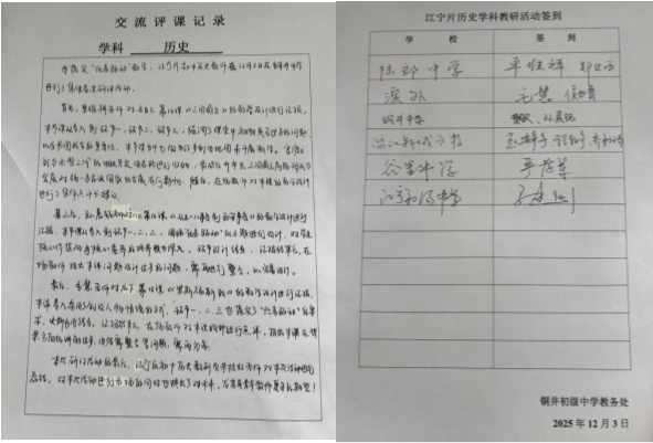 本次江宁片初中历史集体备课研讨活动,为片区历史教师搭建了一个交流学习、共同提升的平台。通过说课、评课、专家指导的环节,教师们不仅对“任务驱动”教学理念的落地有了更清晰的认识,也在教学设计的优化、课堂问题的解决等方面收获了宝贵的经验。铜井初级中学作为本次活动的承办方,也以此次活动为契机,进一步推动了校内历史教研工作的开展。参与活动的教师纷纷表示,将把本次研讨的成果运用到实际教学中,不断打磨课堂教学设计,让“任务驱动”真正成为提升历史课堂教学质量的有力抓手,为江宁区初中历史教育的高质量发展贡献力量。