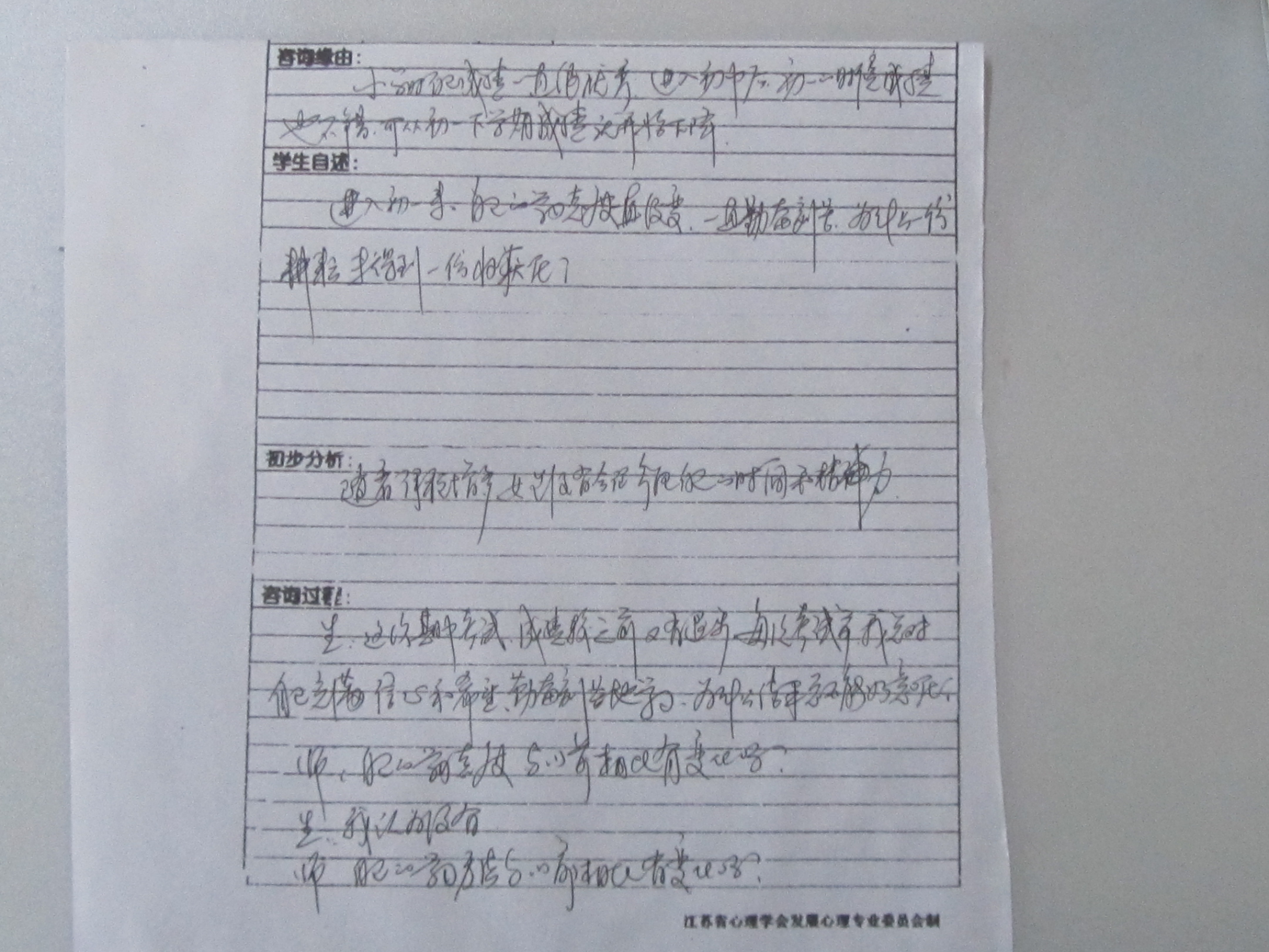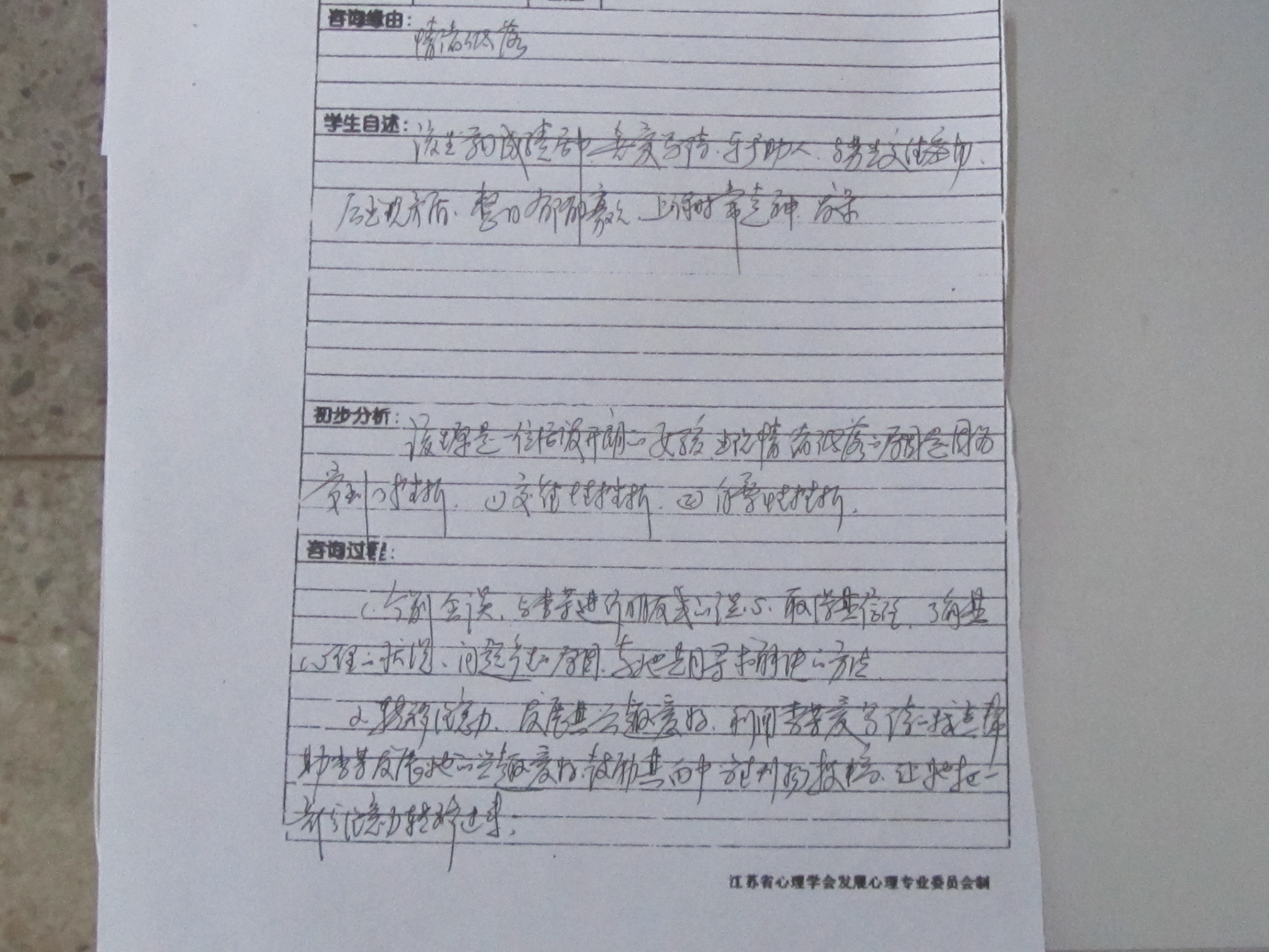 心理咨询室台帐照片