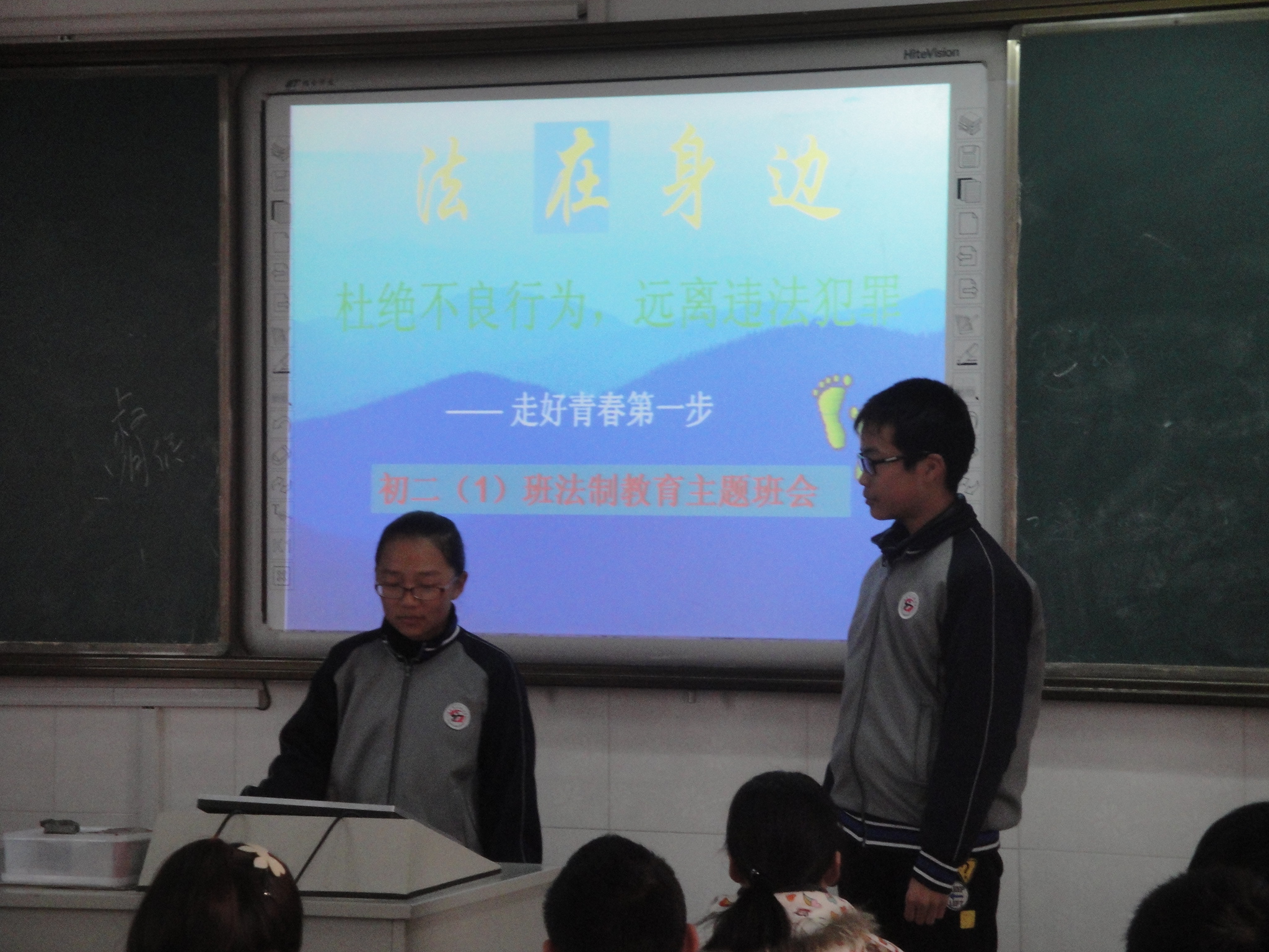 为加强学生的法制观念,增强学法、懂法、守法意识,12月1日早晨,我们开展了《宪法》国旗下讲话,从什么是宪法,宪法的重要性以及宪法与我们的关系等方面,向全体师生宣传《宪法》知识;同时我们精心制作了橱窗展板,张贴于校门口显著位置,向家长和进出学校的来宾宣传法律知识;12月4日下午邀请了法制副校长对我校学生进行法制教育; 12月8日下午各班级开展了以“弘扬宪法精神,开展宪法教育”为主题的法制教育主题班会。各班级联系目前中学生中普遍存在的法律意识较为淡薄的实际,通过演讲、知识竞赛、情景表演等丰富多彩的方式呈现,并以通俗易懂、简单实用的法律知识,解读了一个个生动鲜活、触目惊心的青少年犯罪案例。这一次的法制教育主题班会活动,不仅使学生明白在日常的学习生活中自觉遵守行为规范、遵守法律的重要性,而且将法制观念深入到每个学生心中,进一步增进了全校同学知法、守法意识,促使大家养成知法懂法、依法办事、遵纪守法的良好习惯。在后面我们还将继续深化主题,开展形式多样的普法活动,让师生能做一个守法的好公民。